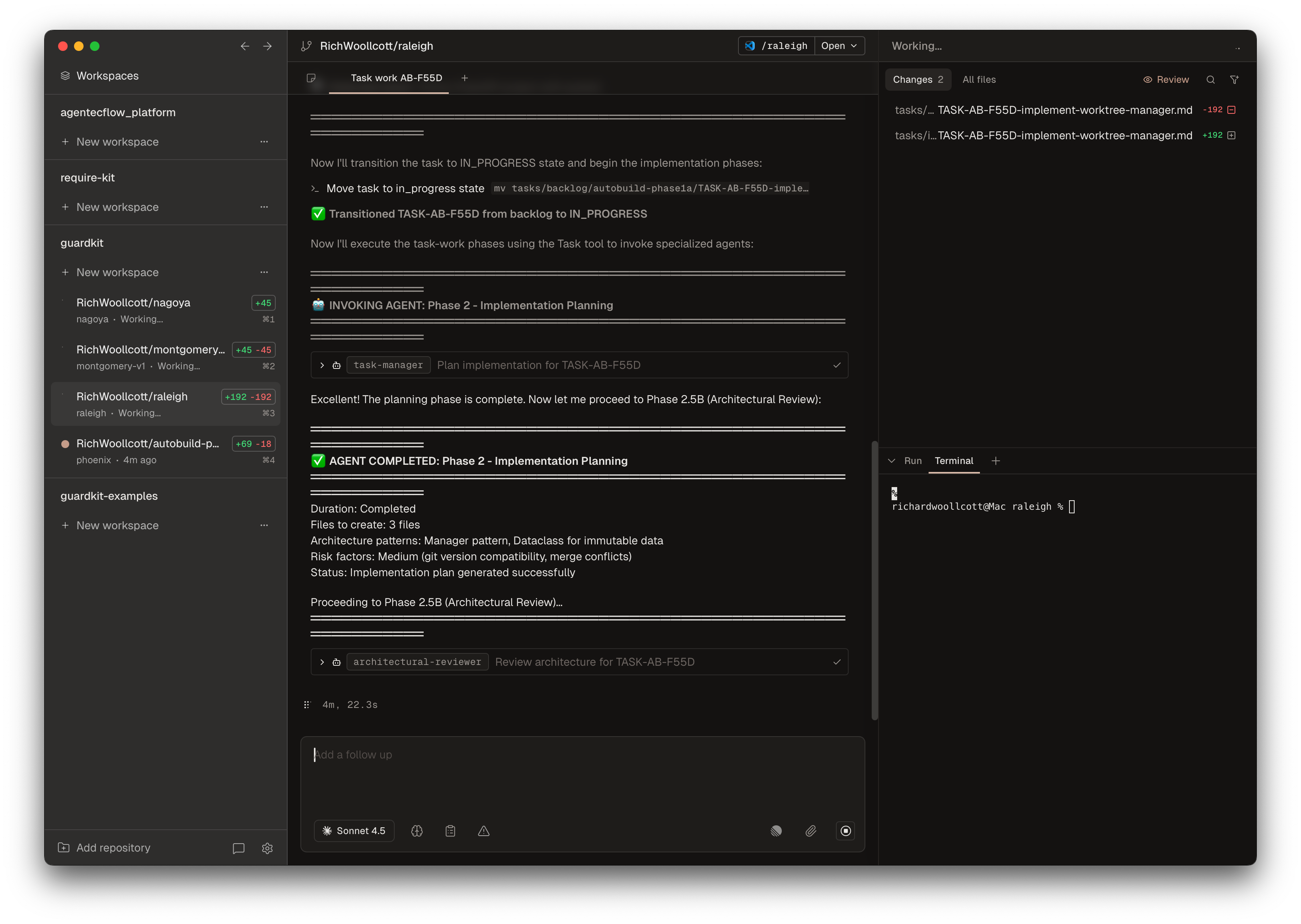 Adding the various quality gates to the task implementation workflow slows things down, so it doesn't really make sense to use the Claude Code CLI in a pseudo-pair-programmer mode. Still, now that we can implement these tasks in parallel, the time per task matters less, since we can work on something else, such as researching the next feature, instead of sitting and waiting for Claude Code.